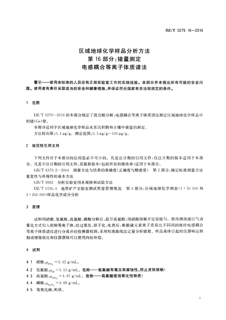 DZ/T 0279.16-2016 区域地球化学样品分析方法 第16部分:锗量测定电感耦合等离子体质谱法