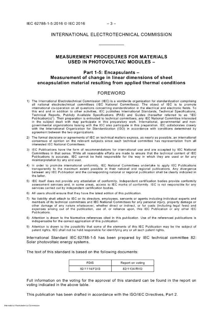 IEC 62788-1-5-2016 光伏模块用材料的测量程序 第1-5部分:灌封胶 热条件造成的片封装材料线性尺寸变化测量