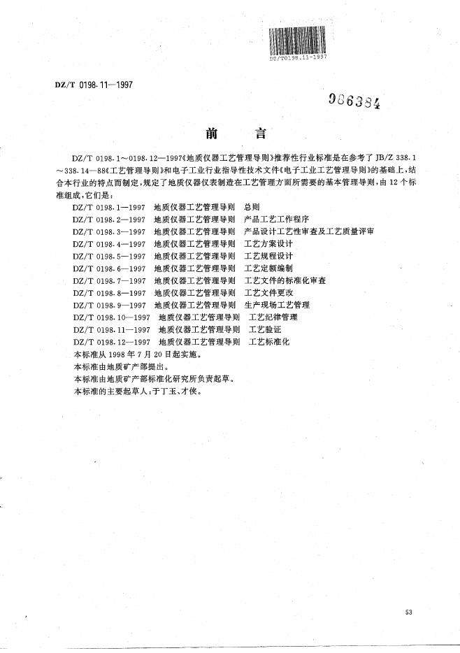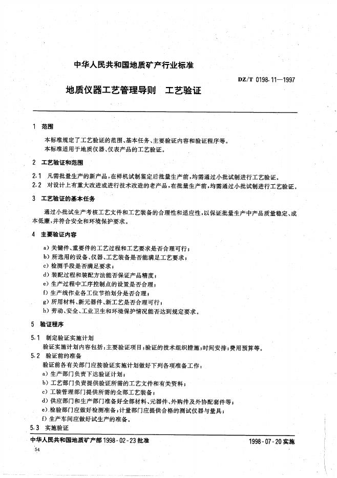 DZ/T 0198.11-1997 地质仪器工艺管理导则 工艺验证