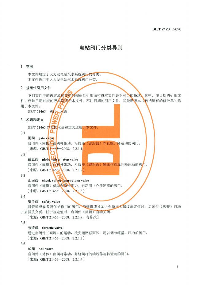 DL/T 2123-2020 电站阀门分类导则