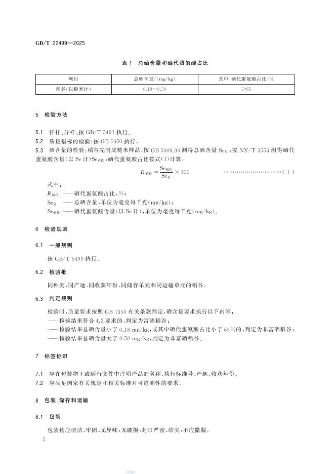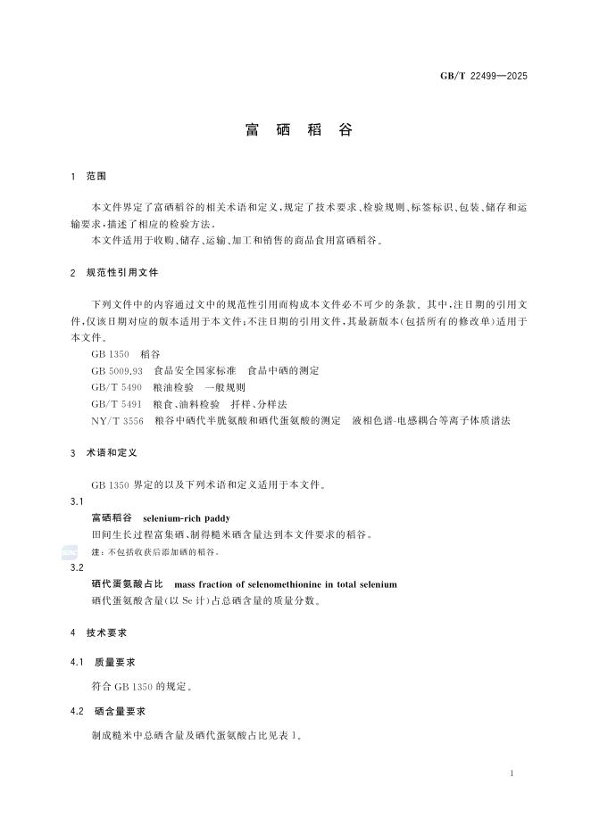 GB/T 22499-2025 富硒稻谷