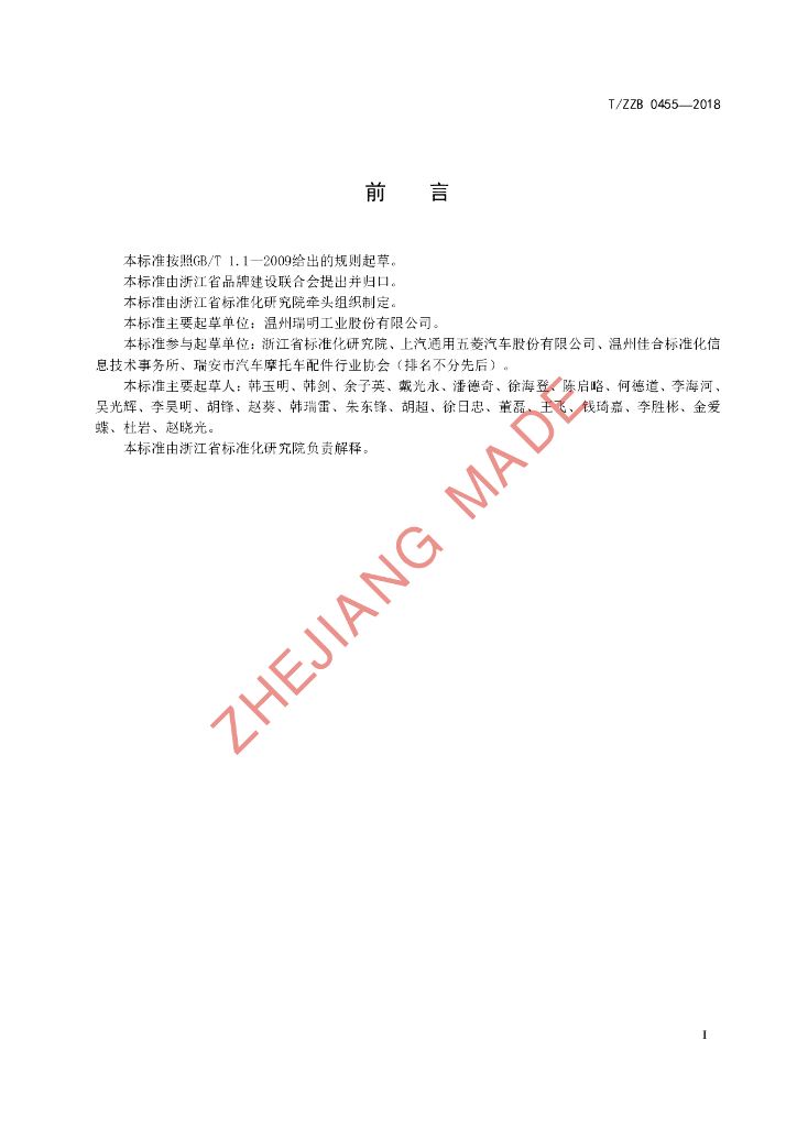温州瑞明工业股份有限公司、浙江省标准化研究院、上汽通用五菱汽车股份有限公司、温州佳合标准化信息技术事务所、瑞安市汽车摩托车配件行业协会