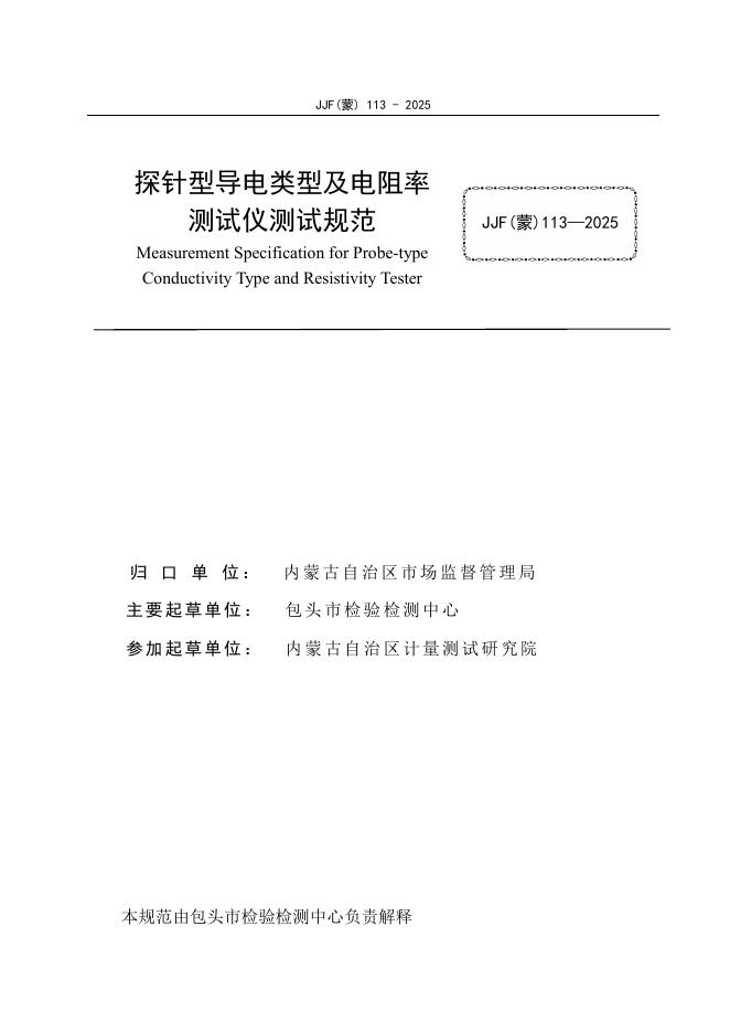JJF(蒙)113-2025 探针型导电类型及电阻率测试仪测试规范