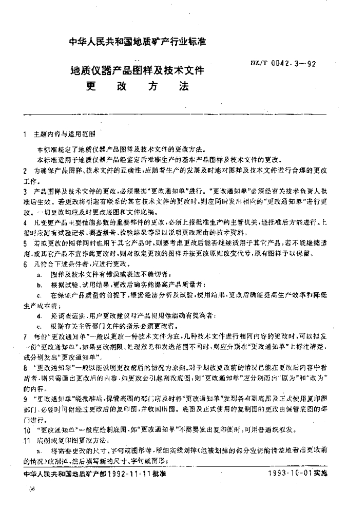DZ/T 0042.3-1992 地质仪器产品图样及技术文件更改方法