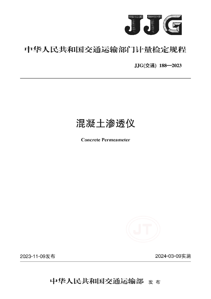 JJG(交通)188-2023 混凝土渗透仪