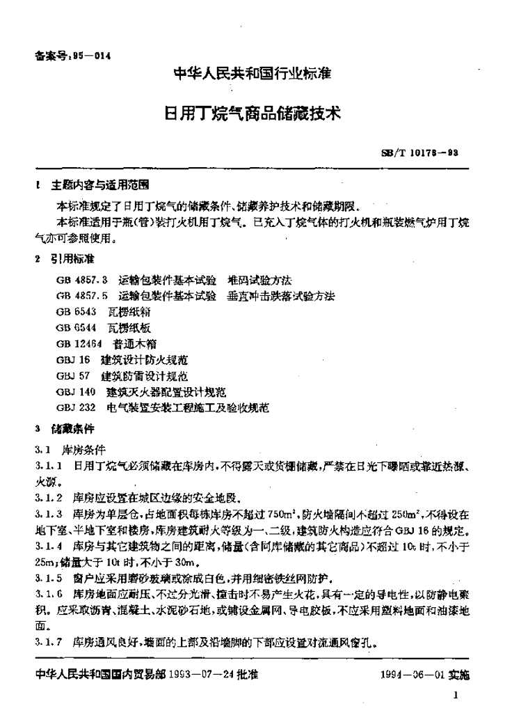 SB/T 10176-1993 日用丁烷气商品储藏技术