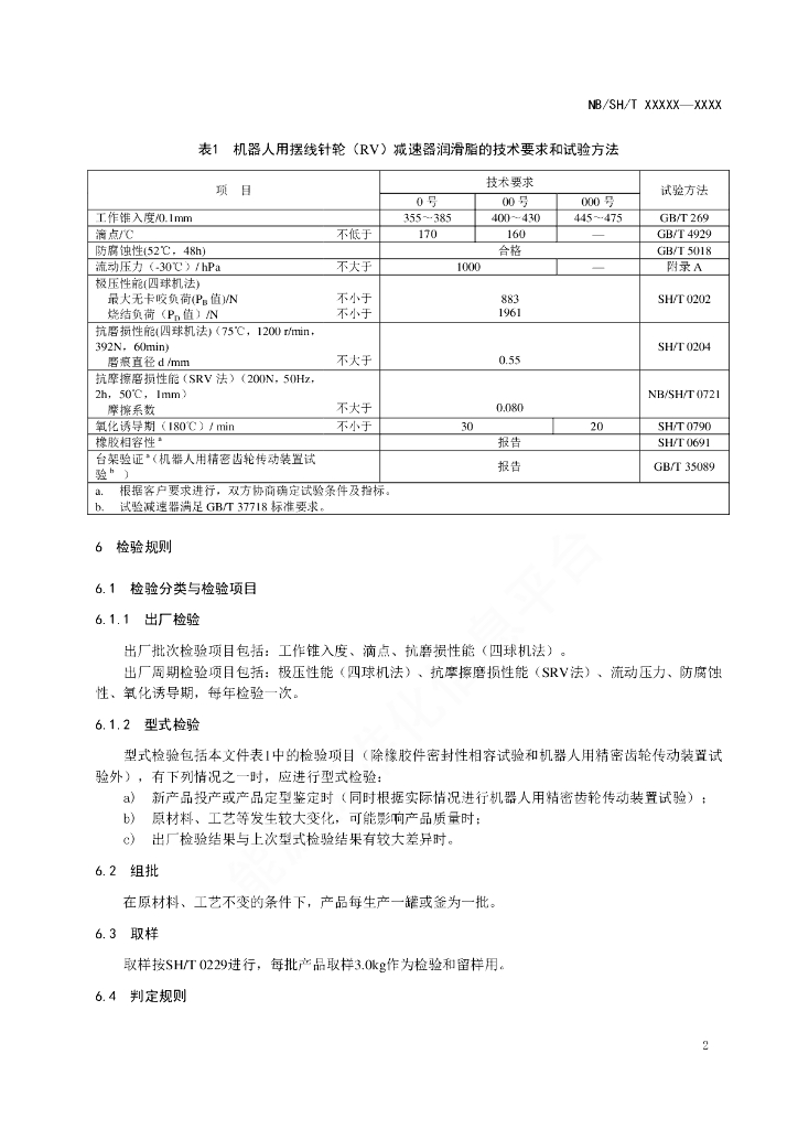 NB/SH/T 6041-2021 机器人用摆线针轮(RV)减速器润滑脂