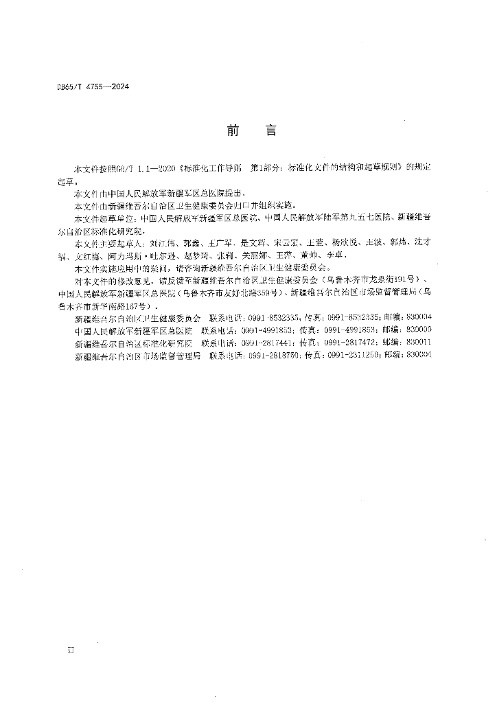 中国人民解放军新疆军区总医院、中国人民解放军陆军第九五七医院、新疆维吾尔自治区标准化研究院