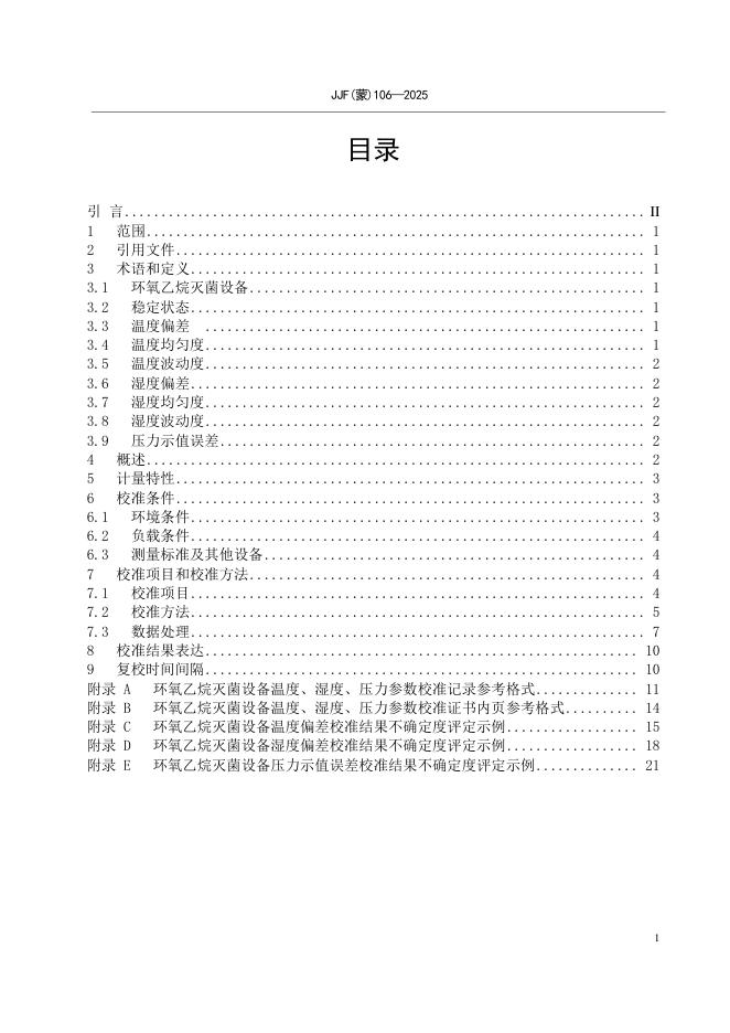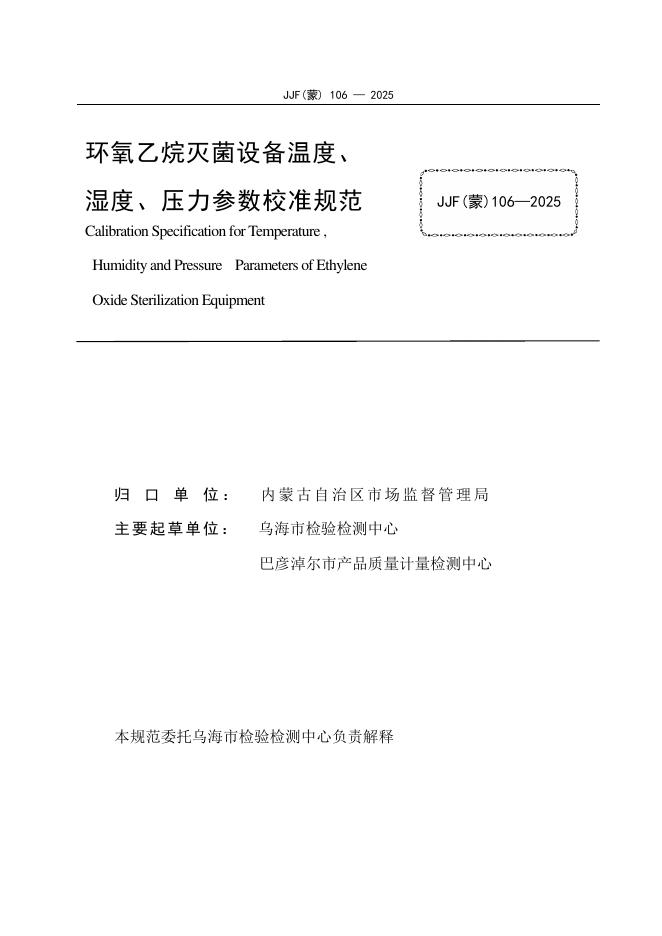 JJF(蒙)106-2025 环氧乙烷灭菌设备温度、湿度、压力参数校准规范