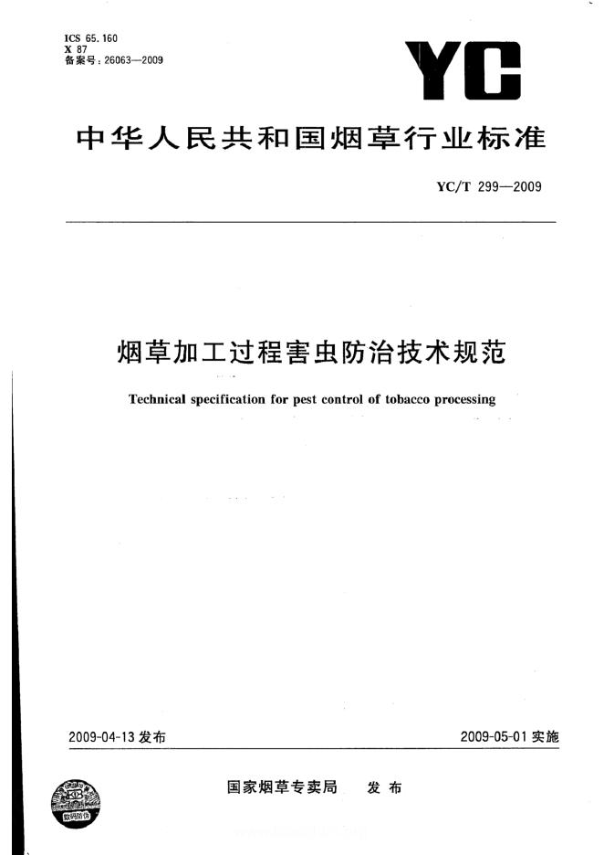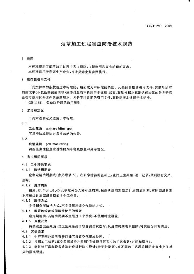 YC/T 299-2009 烟草加工过程害虫防治技术规范