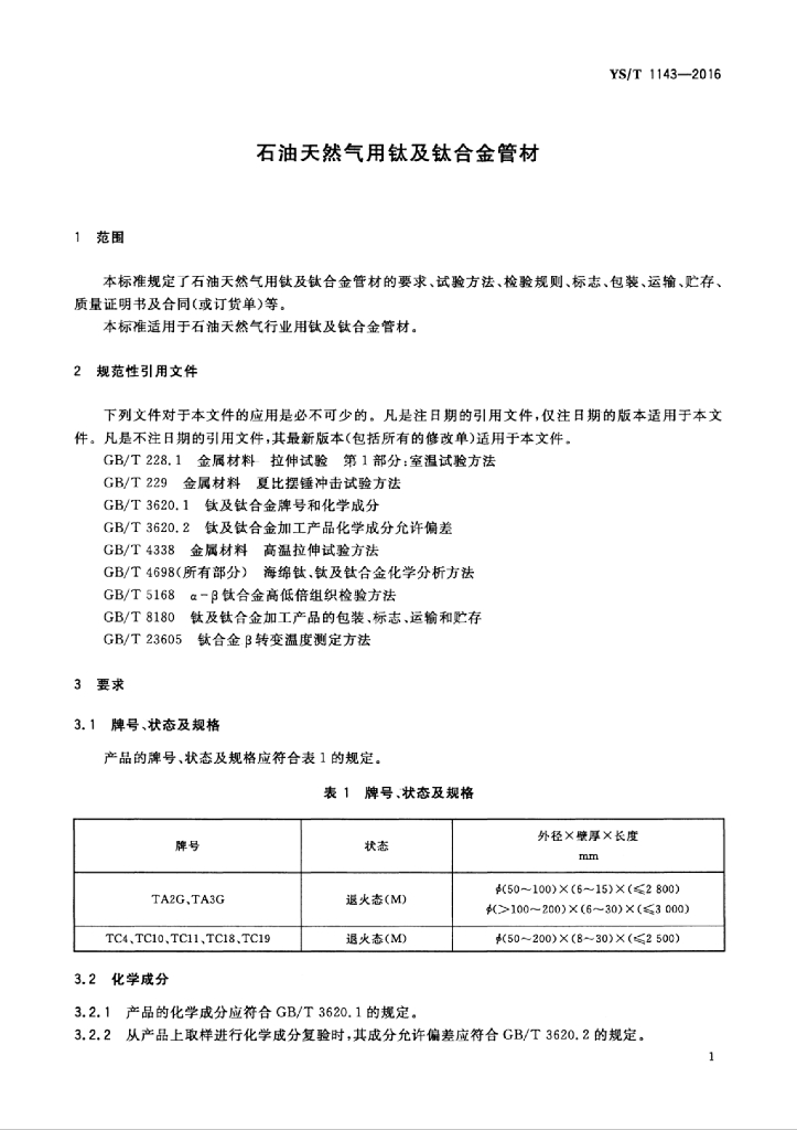 YS/T 1143-2016 石油天然气用钛及钛合金管材