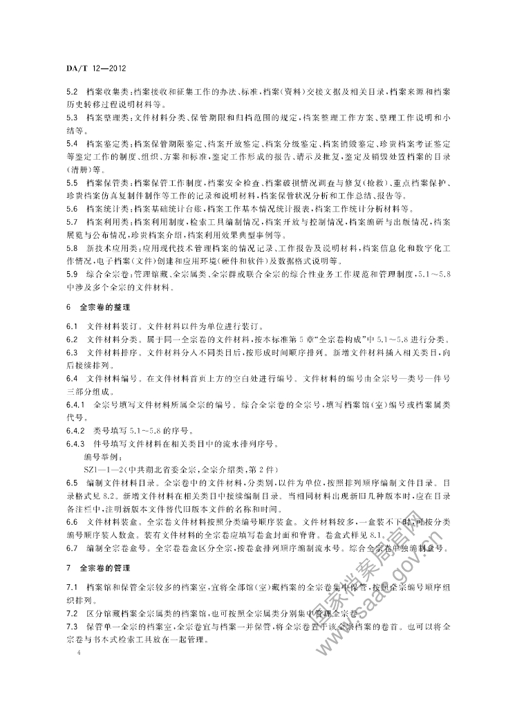 DA/T 12-2012 全宗卷规范