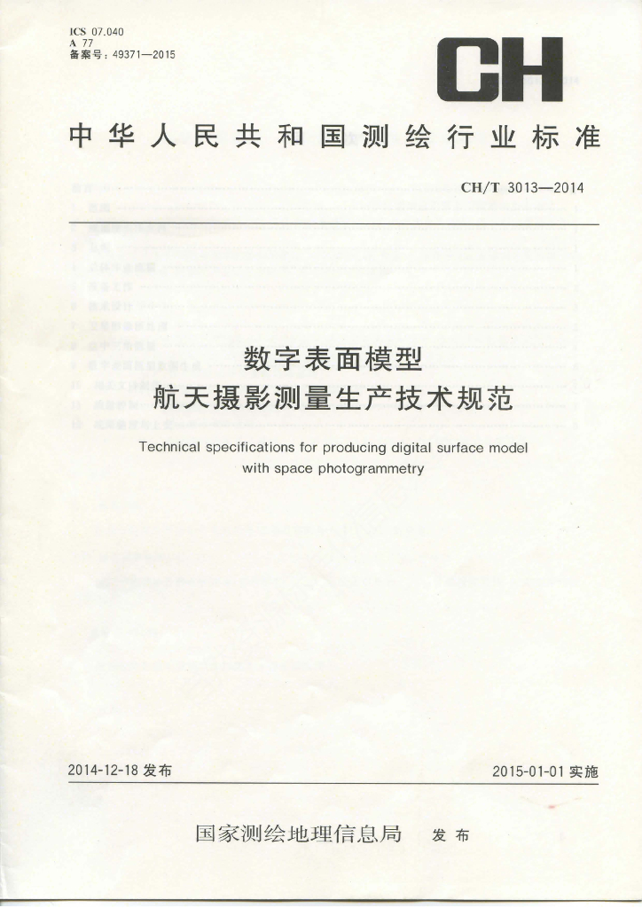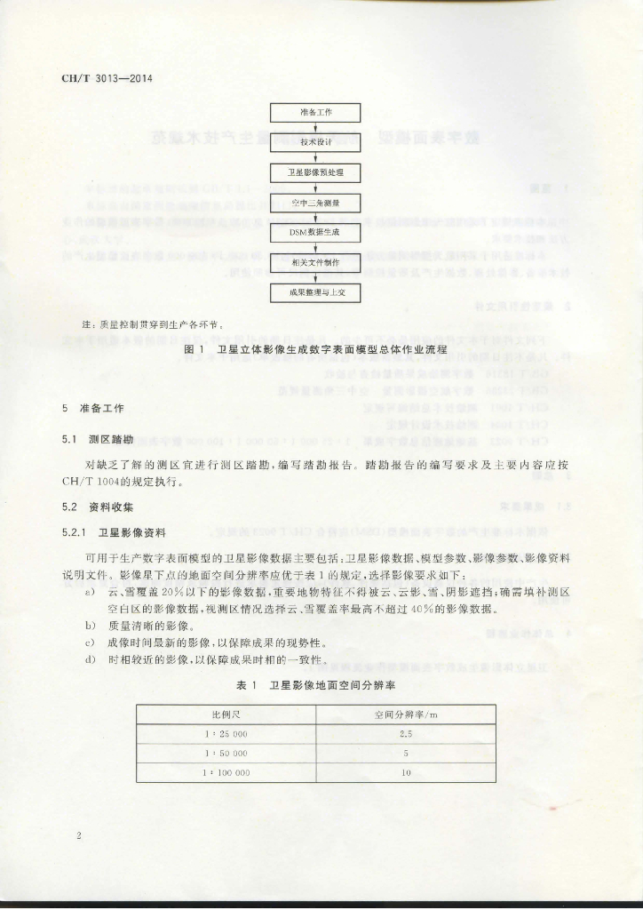 CH/T 3013-2014 数字表面模型航天摄影测量生产技术规范