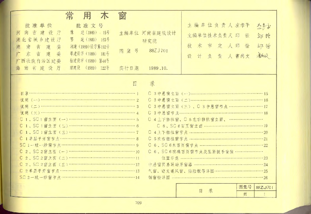 88ZJ701 常用木窗图集(中南标)