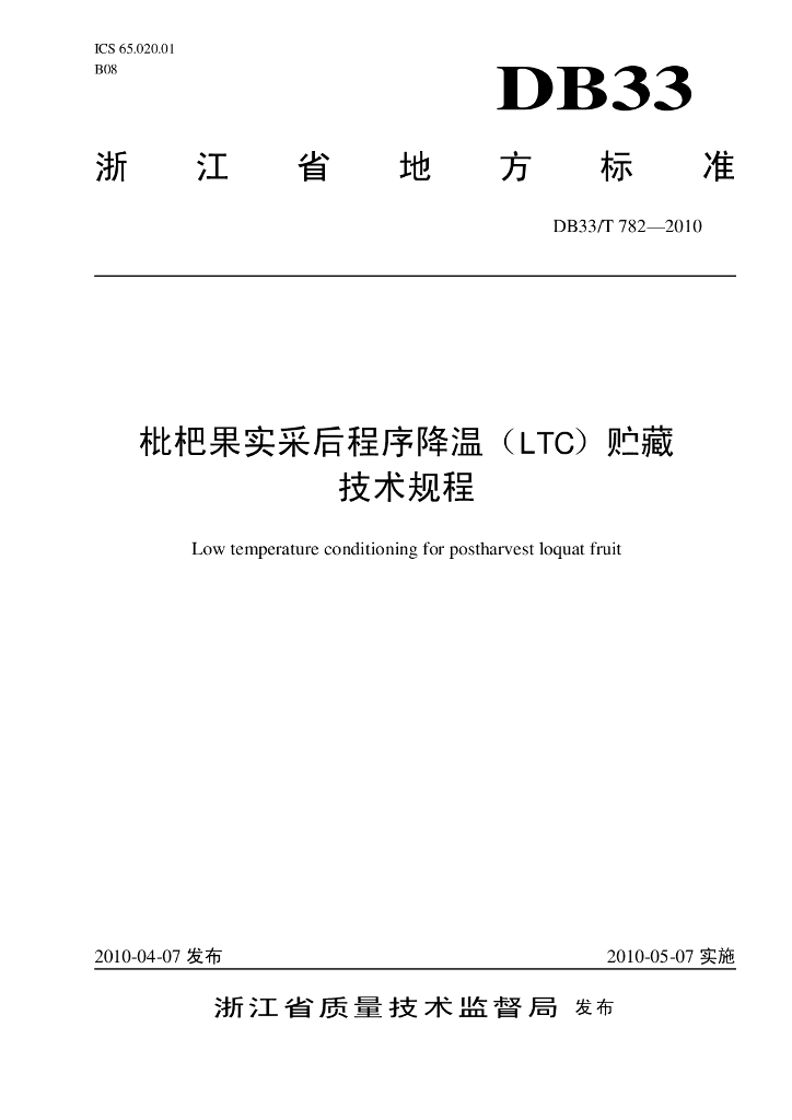 DB33/T 782-2016 枇杷果实采后程序降温(LTC)贮藏技术规程