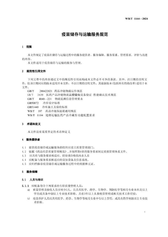 WB/T 1144-2024 疫苗储存与运输服务规范