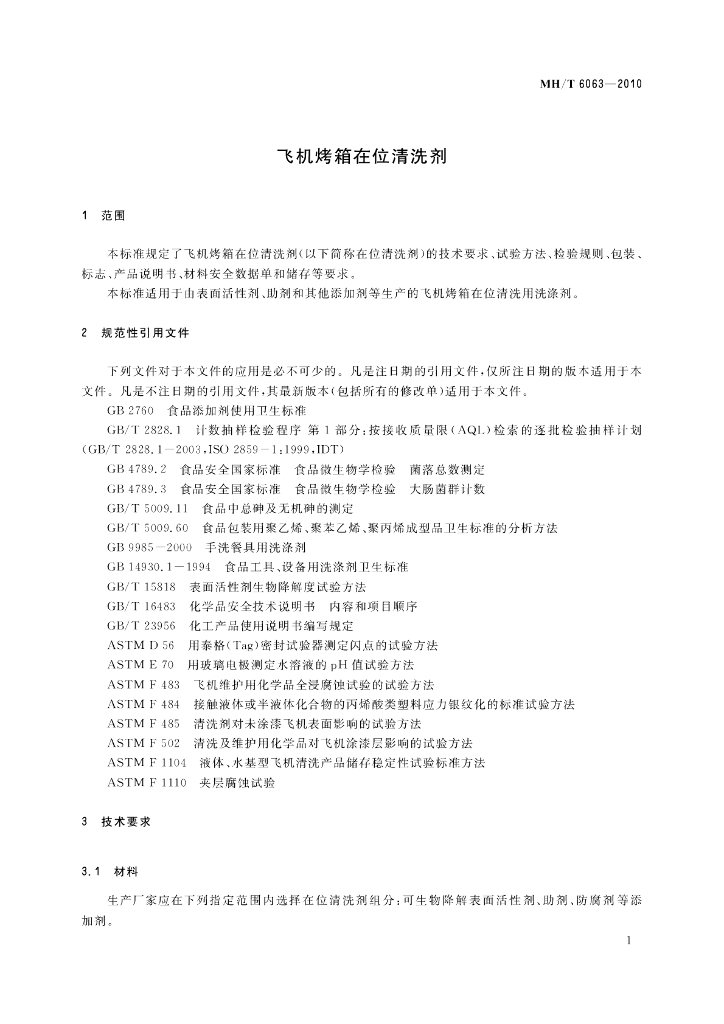 MH/T 6063-2010 飞机烤箱在位清洗剂