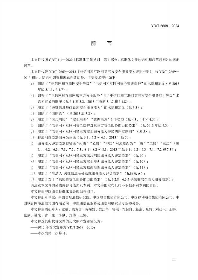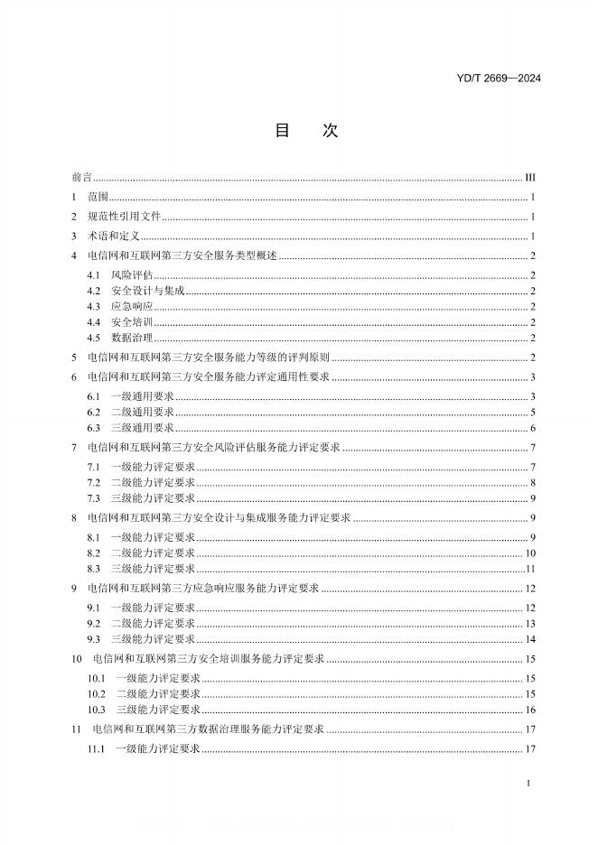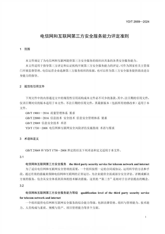 YD/T 2669-2024 电信网和互联网第三方安全服务能力评定准则