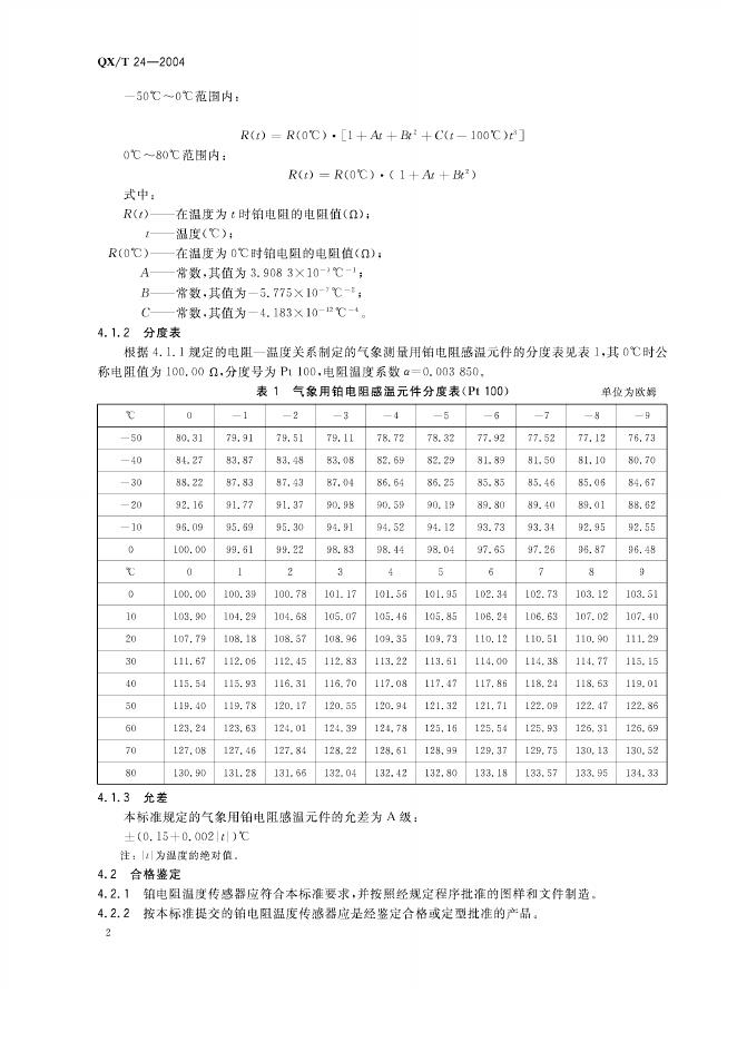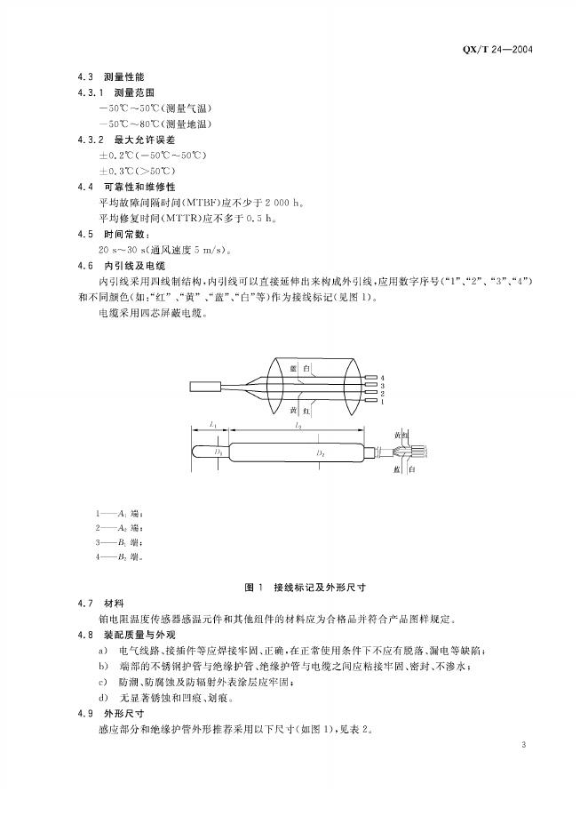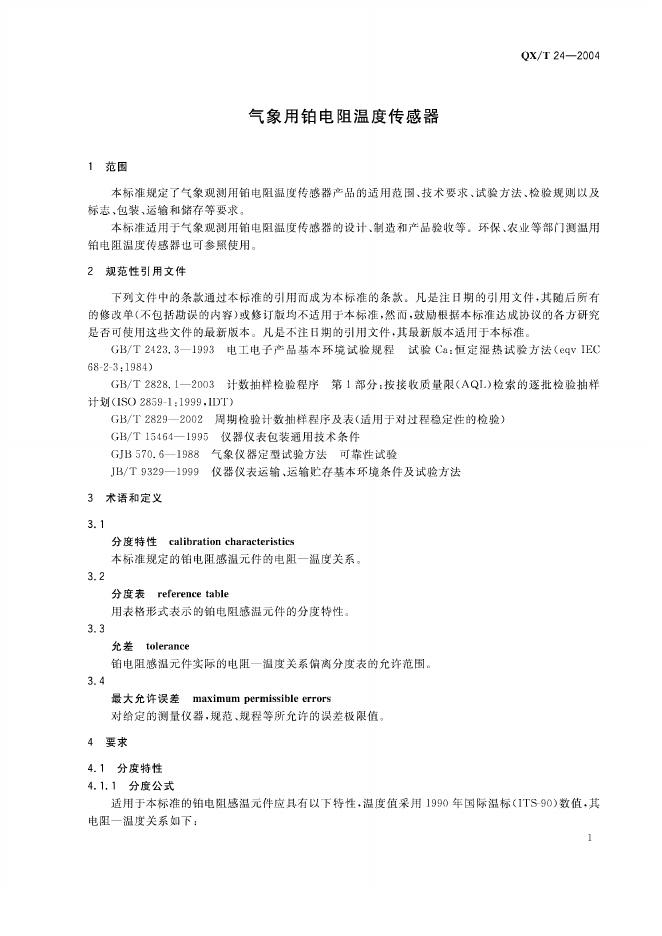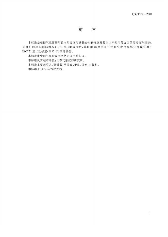QX/T 24-2004 气象用铂电阻温度传感器