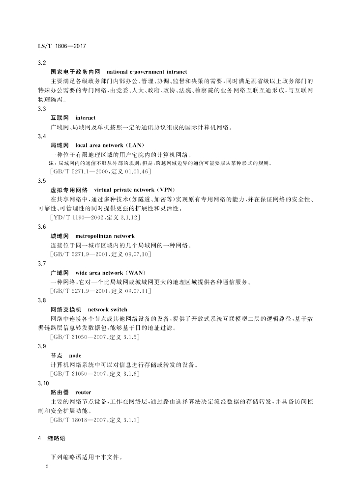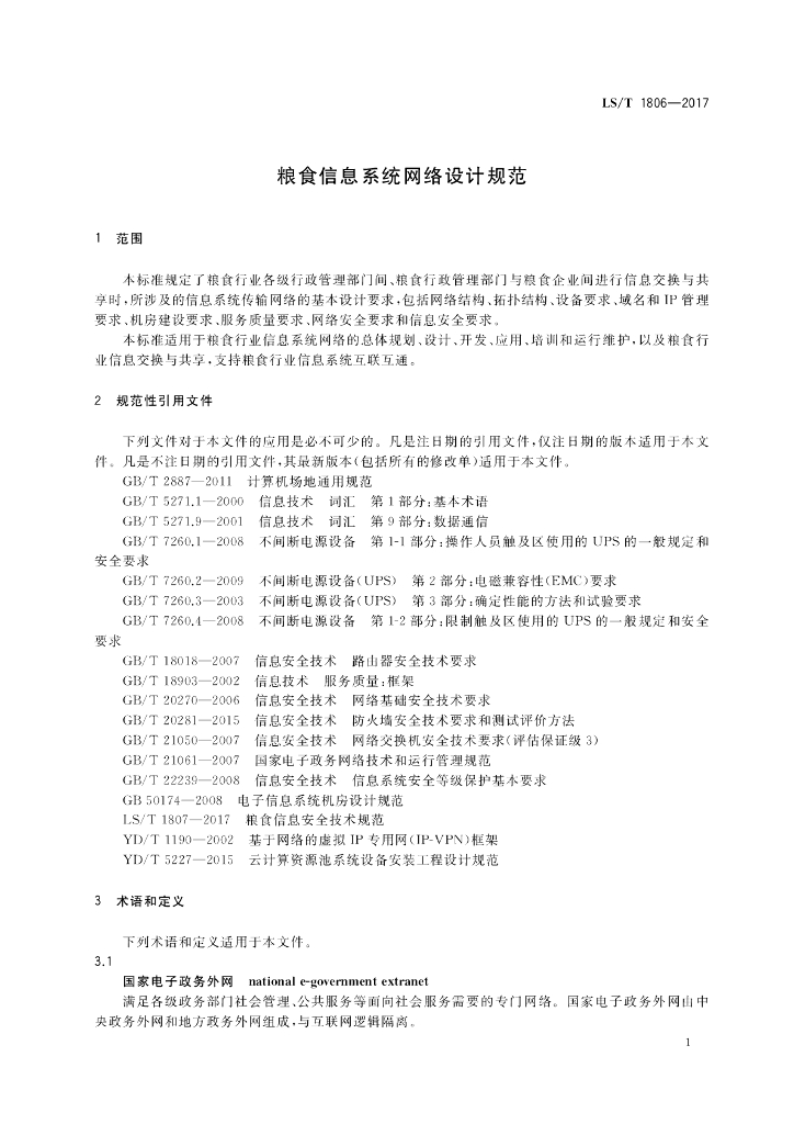 LS/T 1806-2017 粮食信息系统网络设计规范