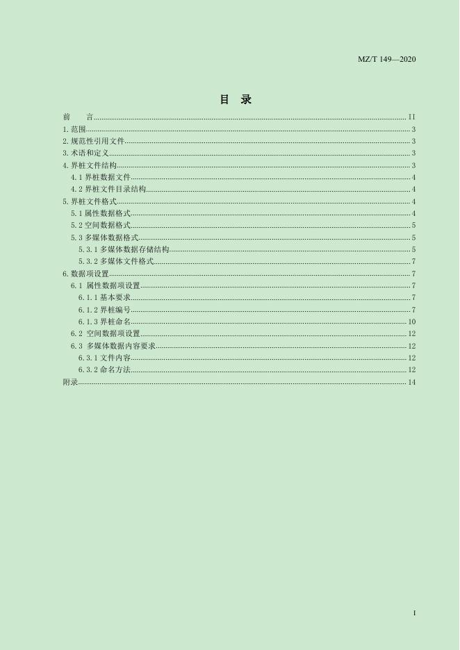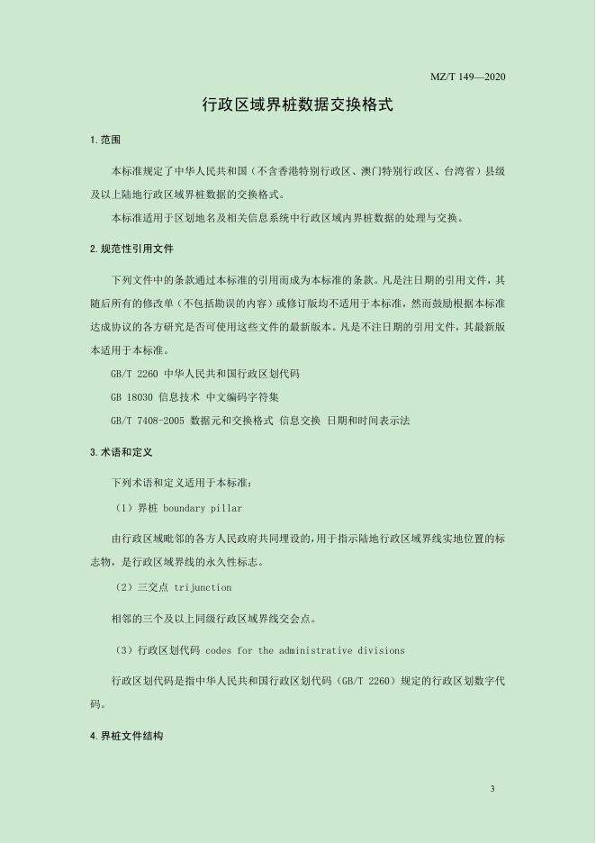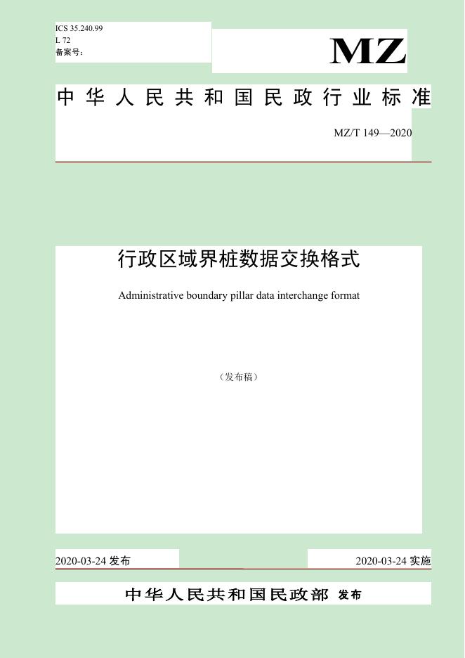 MZ/T 149-2020 行政区域界桩数据交换格式