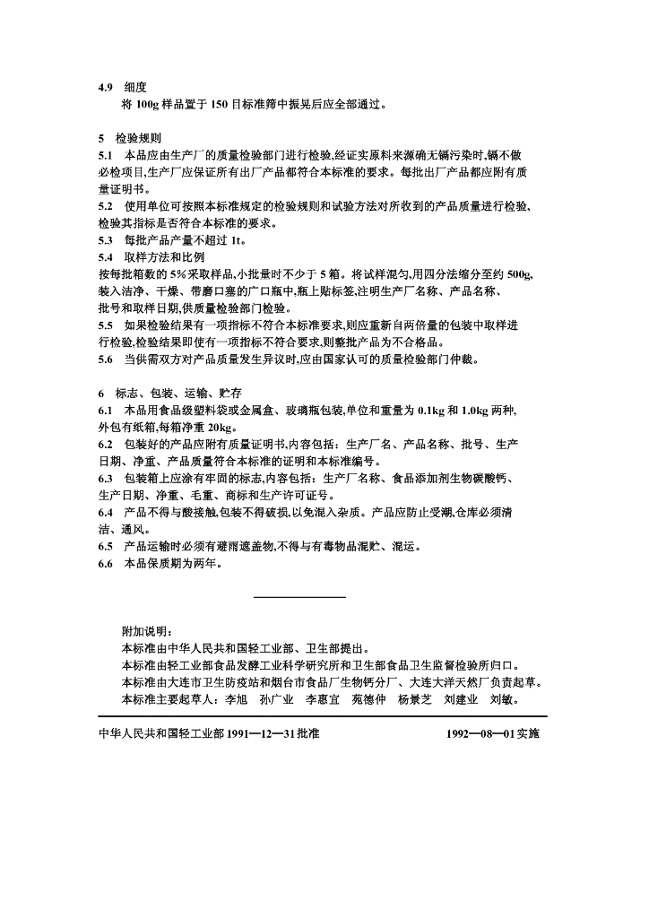 QB 1413-1991 食品添加剂生物碳酸钙