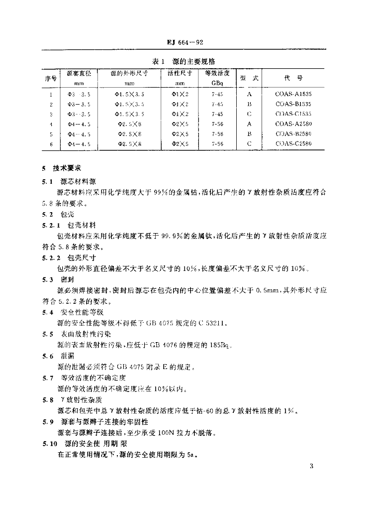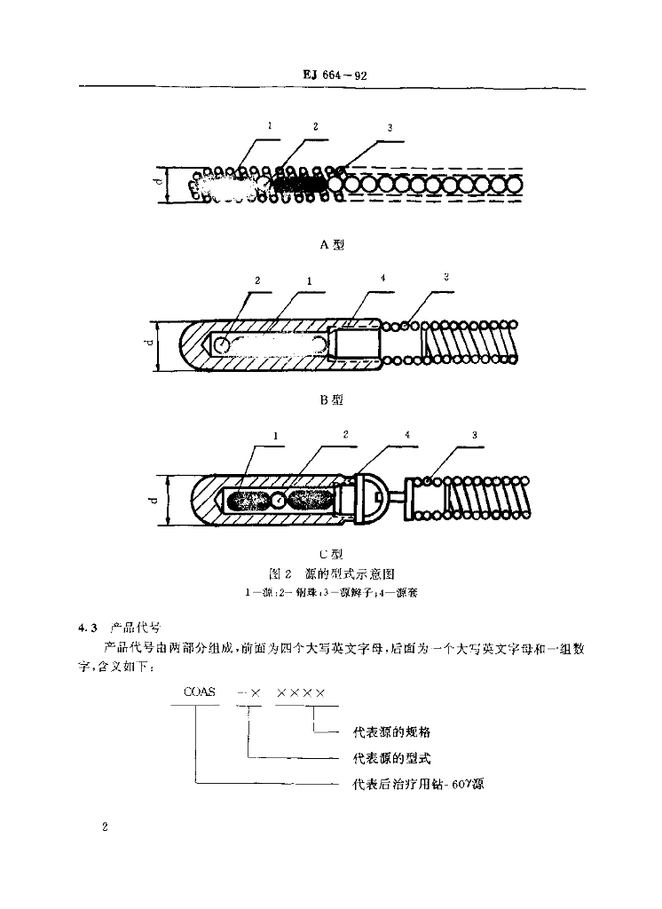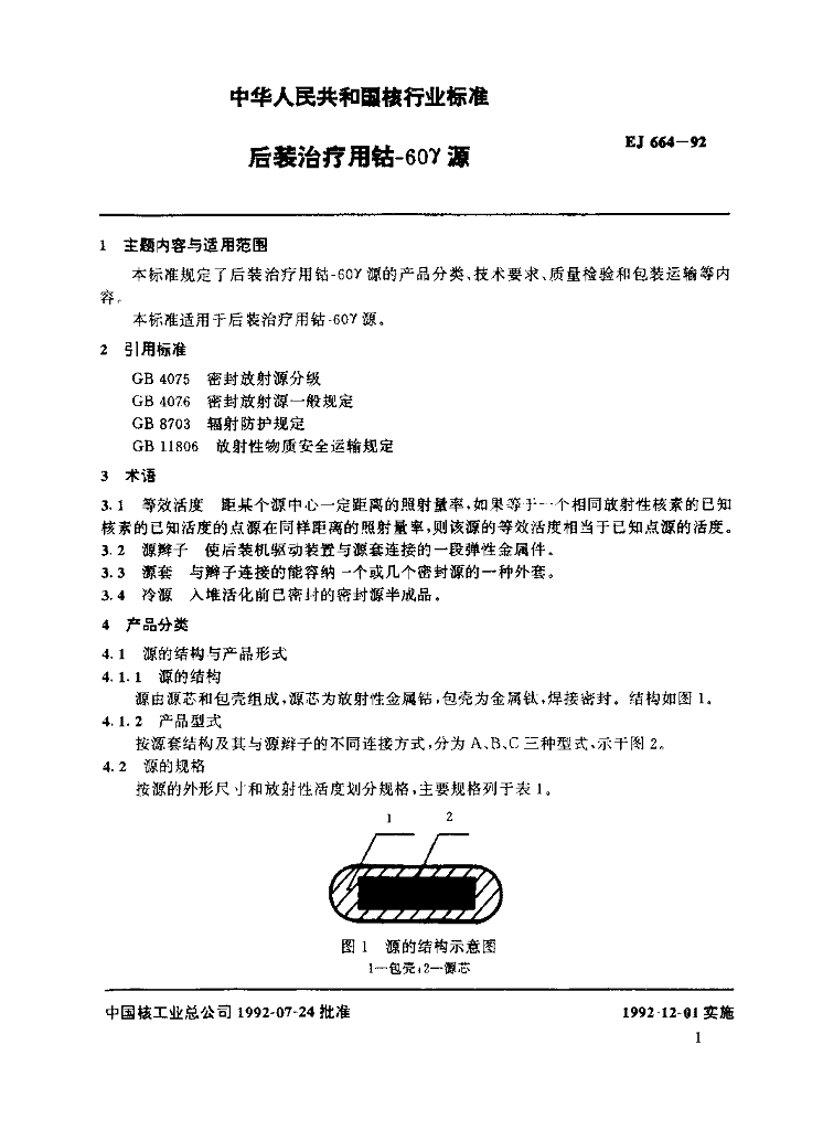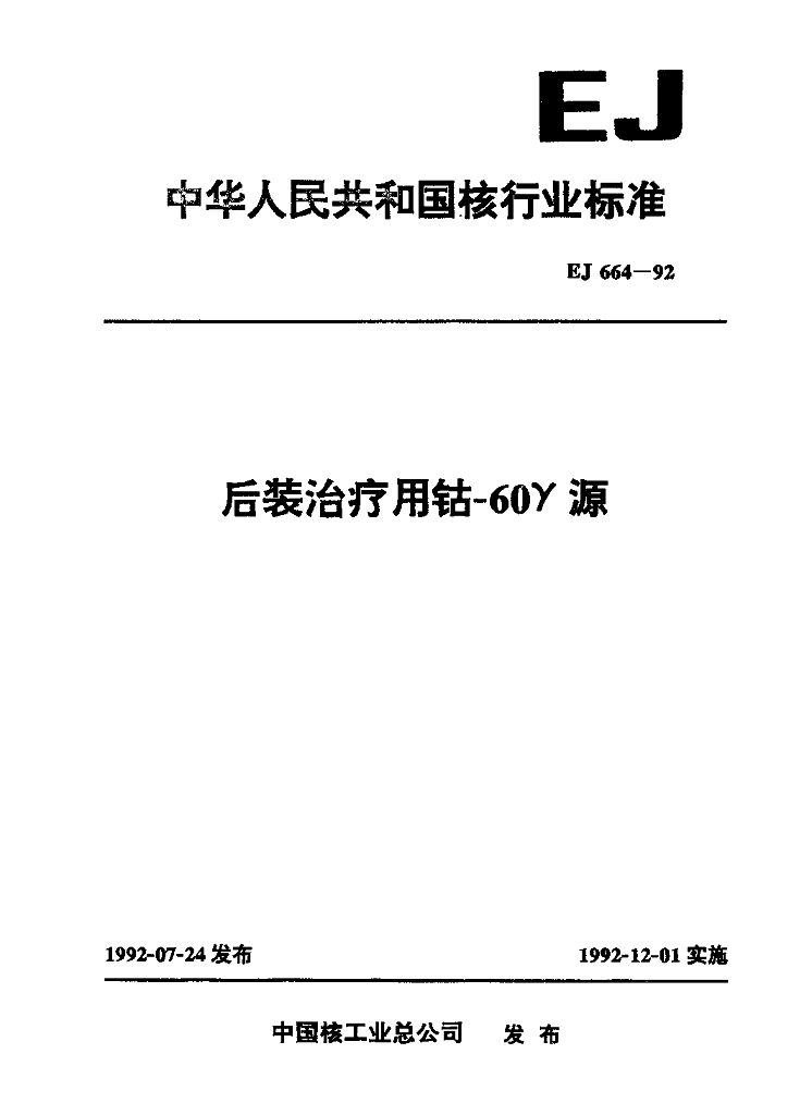 EJ 664-1992 后装治疗用钴-60γ源