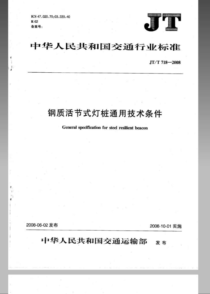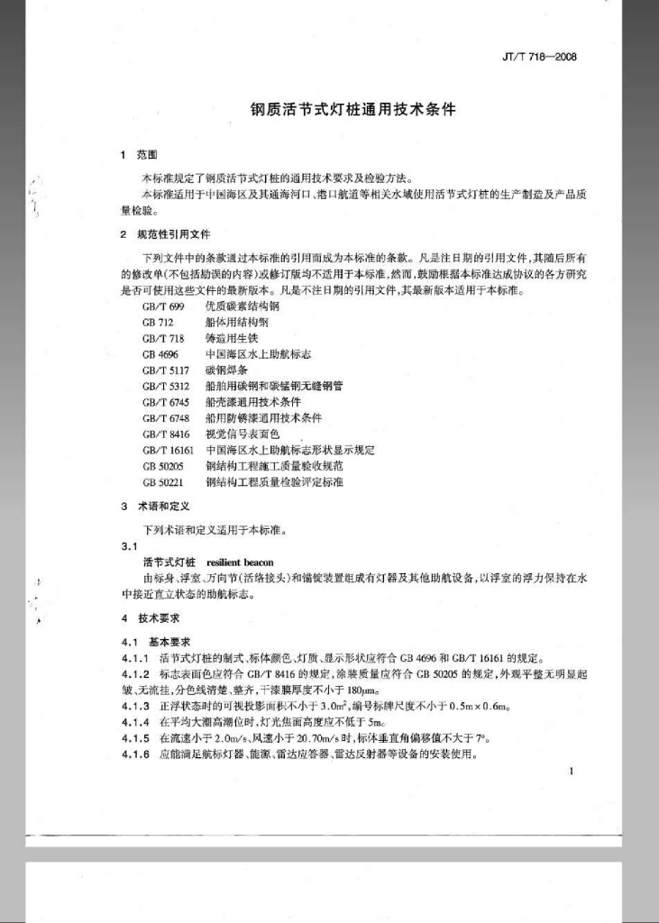 JT/T 718-2008 钢质活节式灯桩通用技术条件