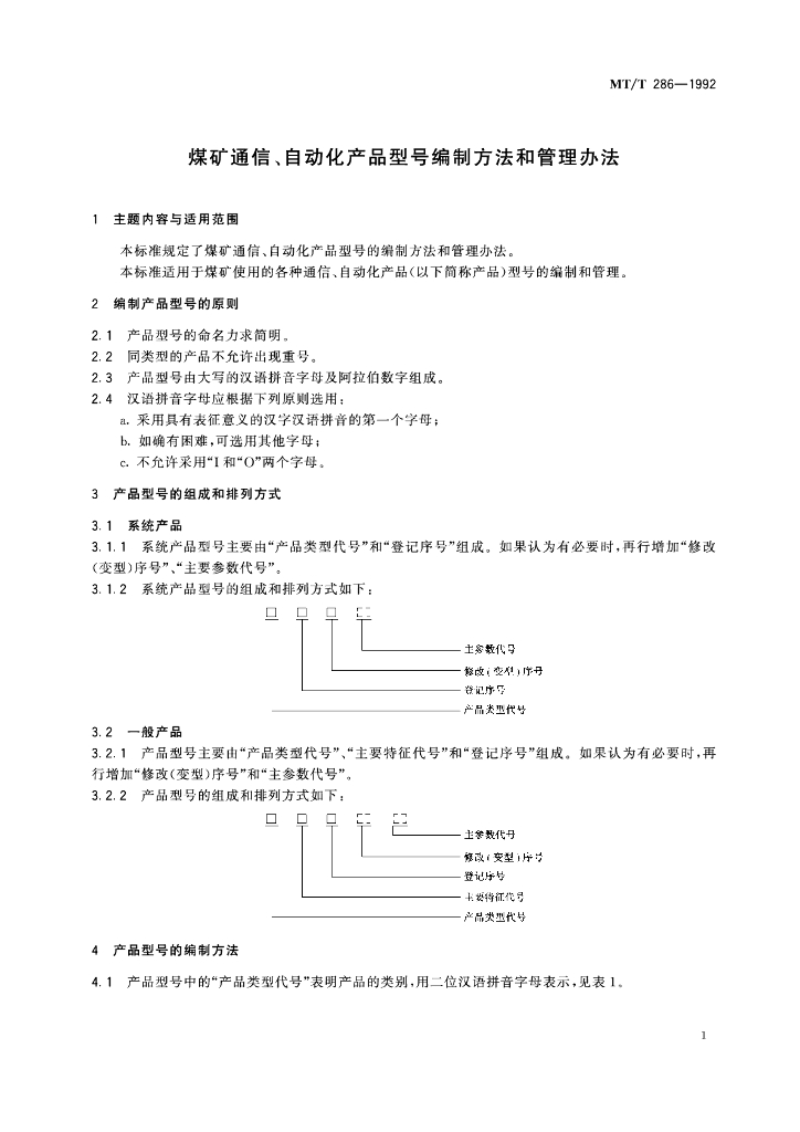 MT 286-1992 煤矿通信 自动化产品型号编制方法和管理方法