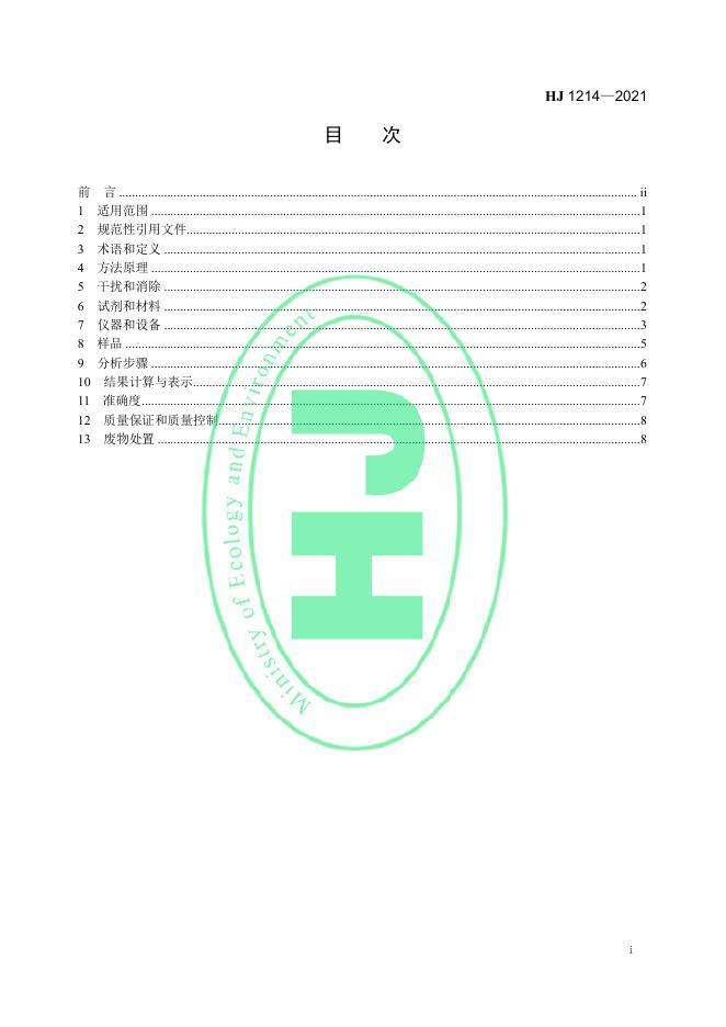 HJ 1214-2021 水质 可吸附有机卤素(AOX)的测定 微库仑法
