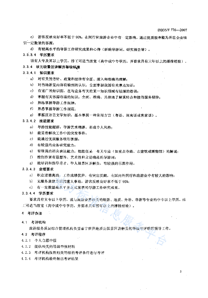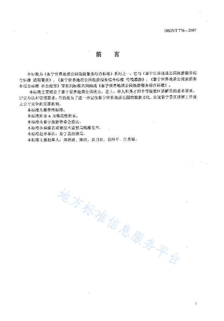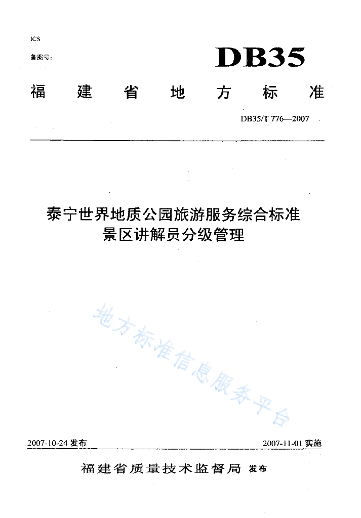 DB35/T 776-2007 泰宁世界地质公园旅游服务综合标准 景区讲解员分级管理