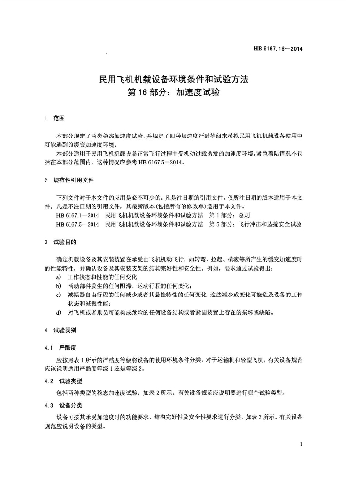 HB 6167.16-2014 民用飞机机载设备环境条件和试验方法 第16部分:加速度试验