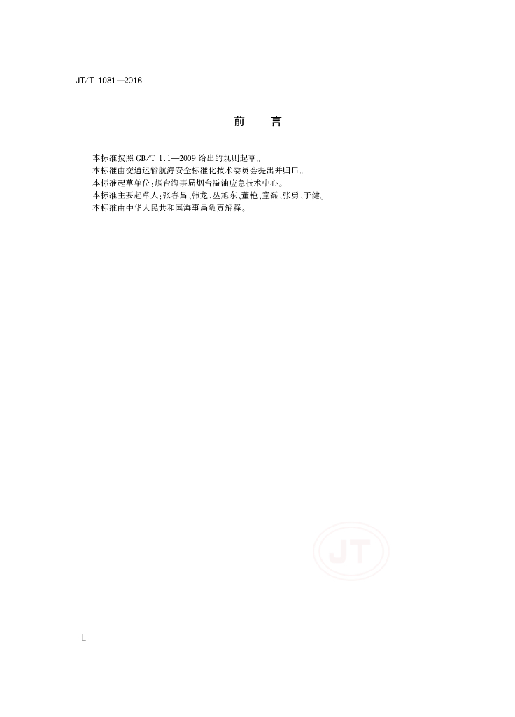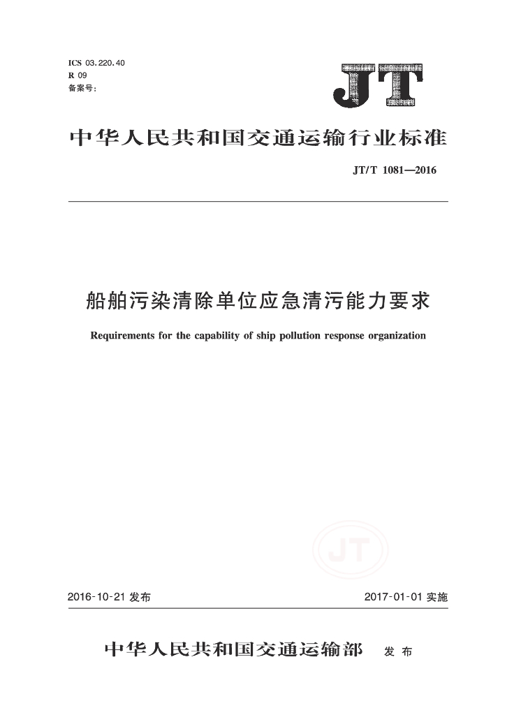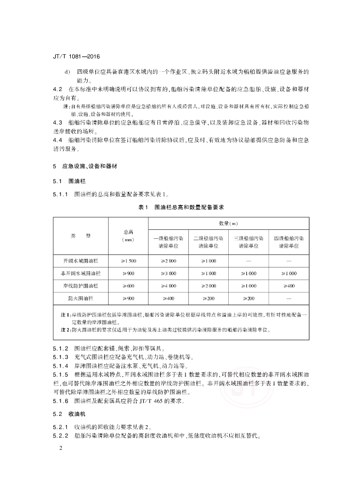JT/T 1081-2016 船舶污染清除单位应急清污能力要求