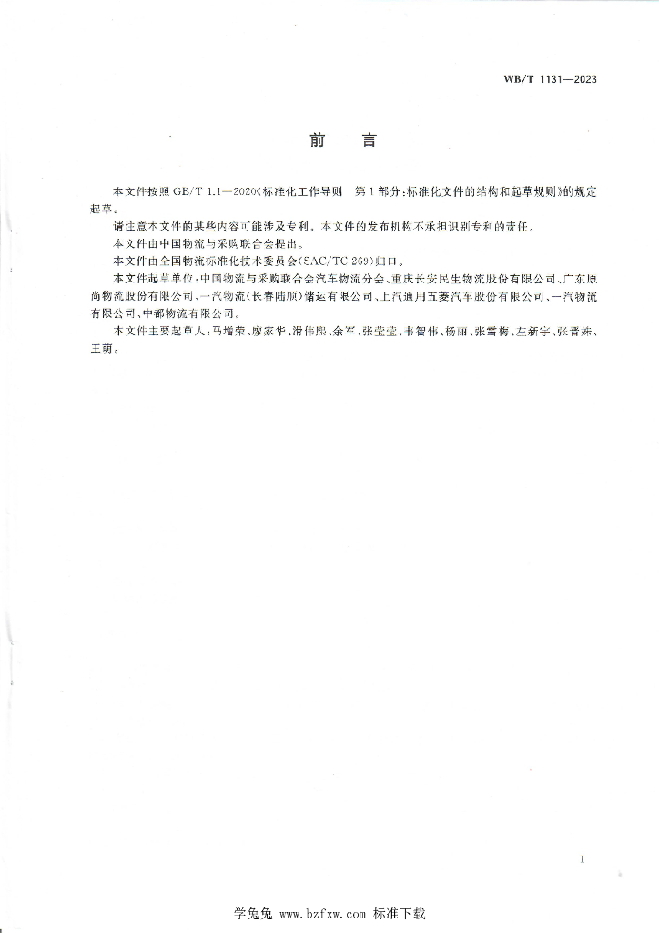 中国物流与采购联合会汽车物流分会、重庆长安民生物流股份有限公司、广东原尚物流股份有限公司、一汽物流(长春陆顺)储运有限公司、上汽通用五菱汽车股份有限公司、一汽物流 有限公司、中都物流有限公司