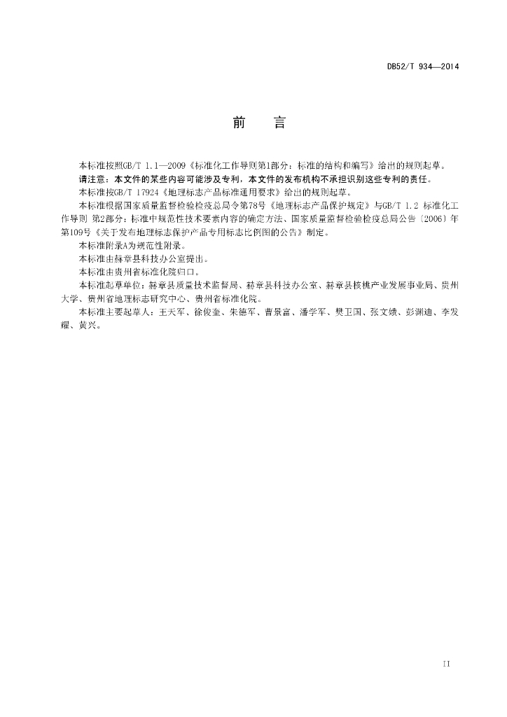 DB52/T 934-2014 地理标志产品 赫章核桃