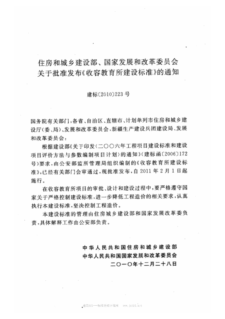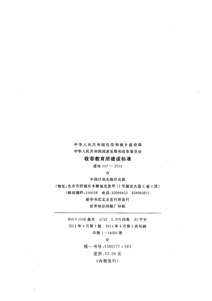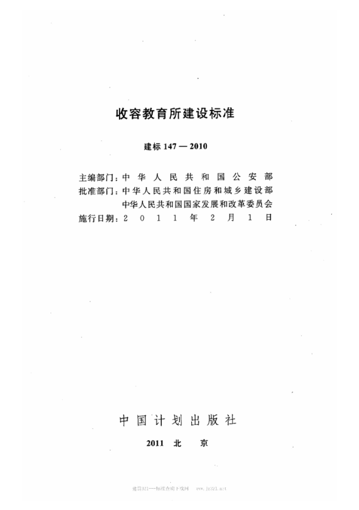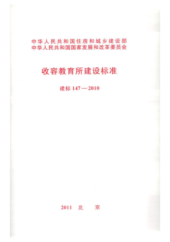 建标 147-2010 收容教育所建设标准
