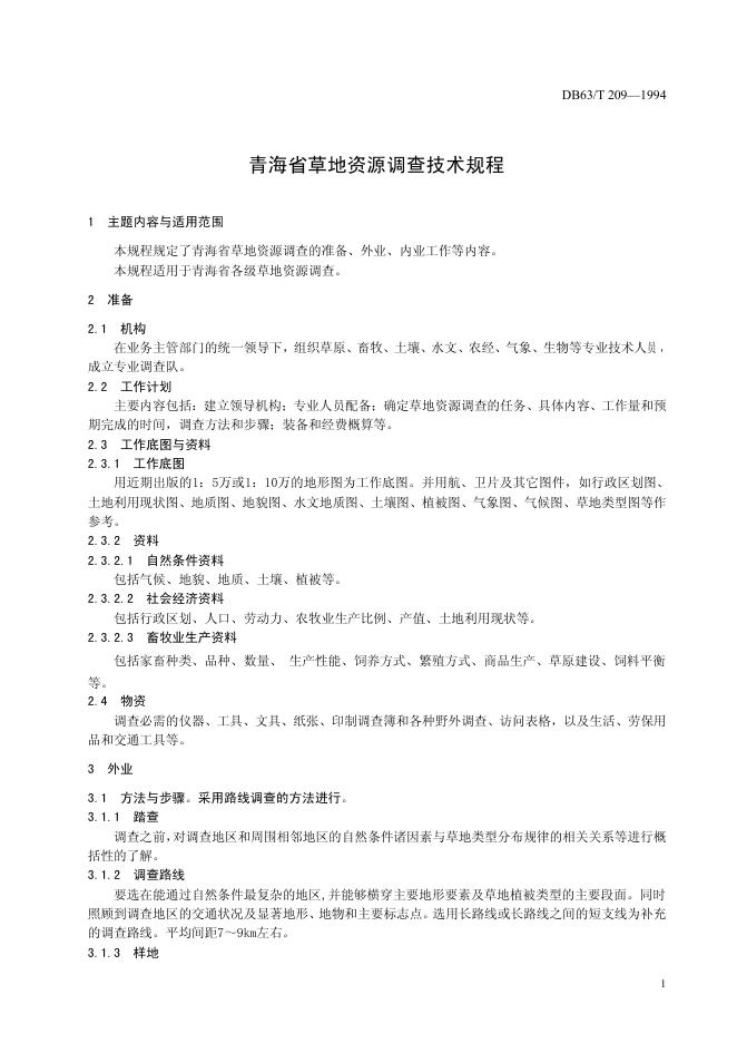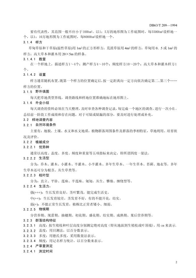 DB63/T 209-1994 草地资源调查技术规程