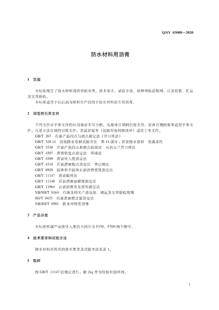Q/SY 03008-2020 防水材料用沥青