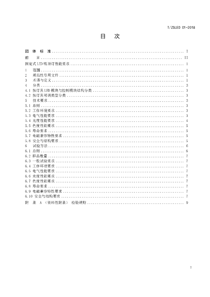 T/ZSLED 01-2018 固定式LED吸顶灯性能要求