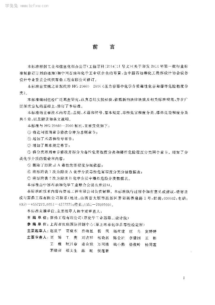 HG/T 20660-2017 压力容器中化学介质毒性危害和爆炸危险程度分类标准