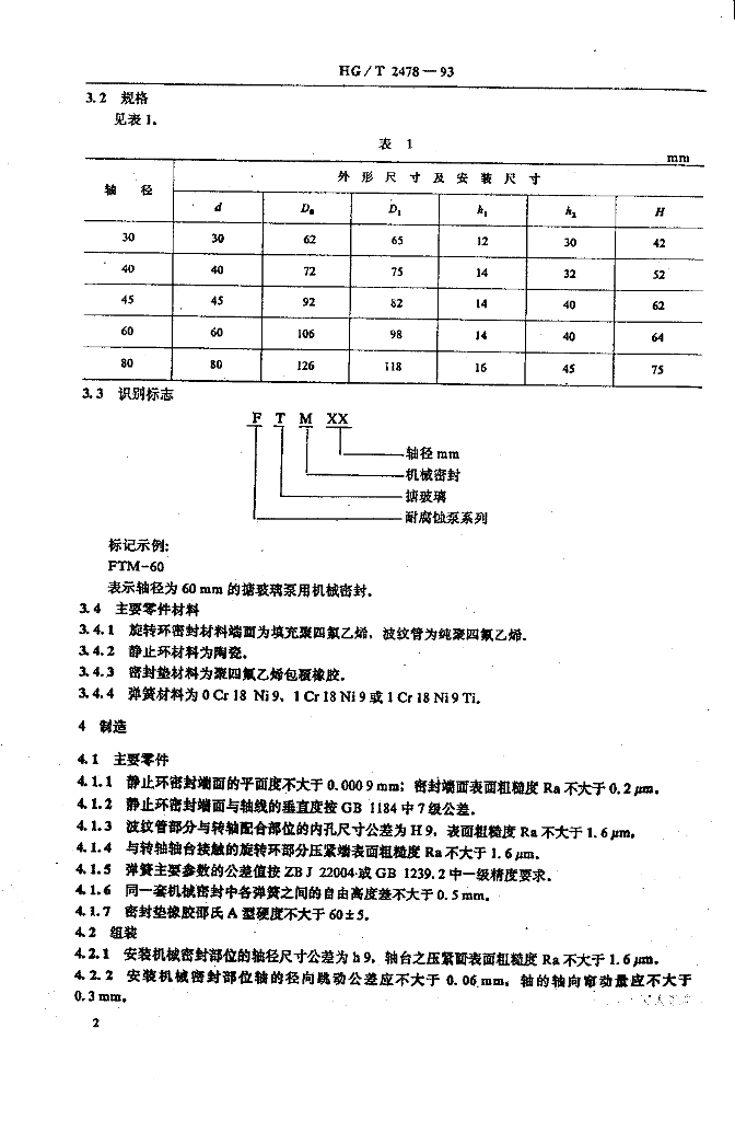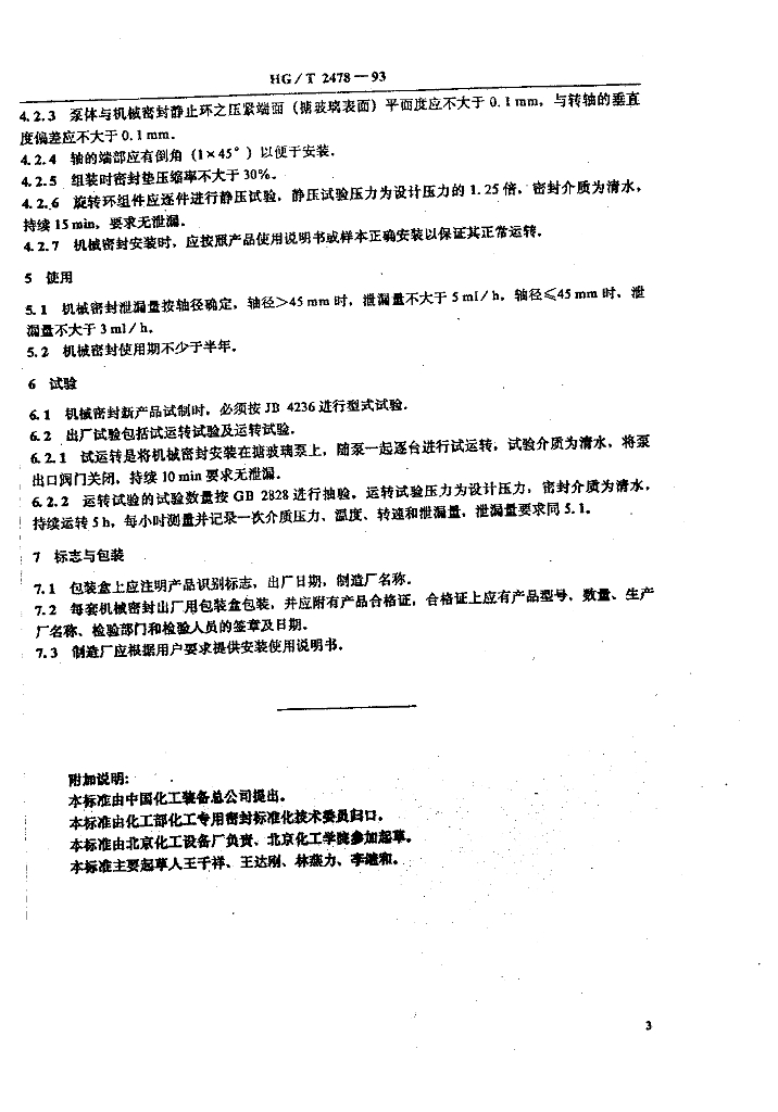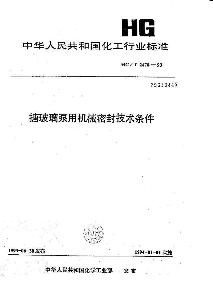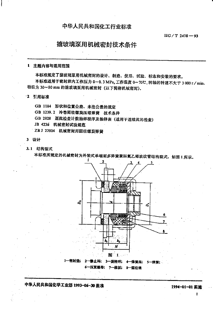 HG/T 2478-1993 搪玻璃泵用机械密封技术条件
