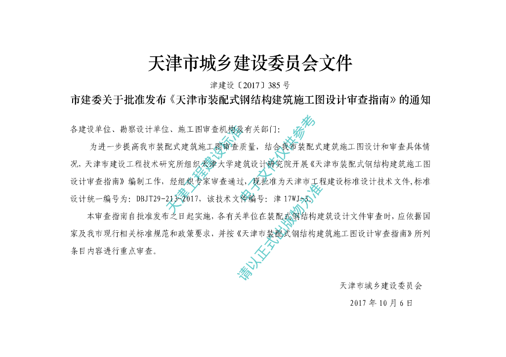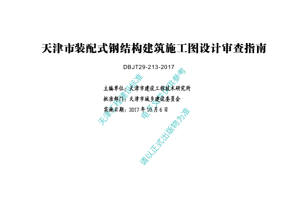 津17WJ-3 天津市装配式钢结构建筑施工图设计审查指南图集(DBJT29-213-2017)