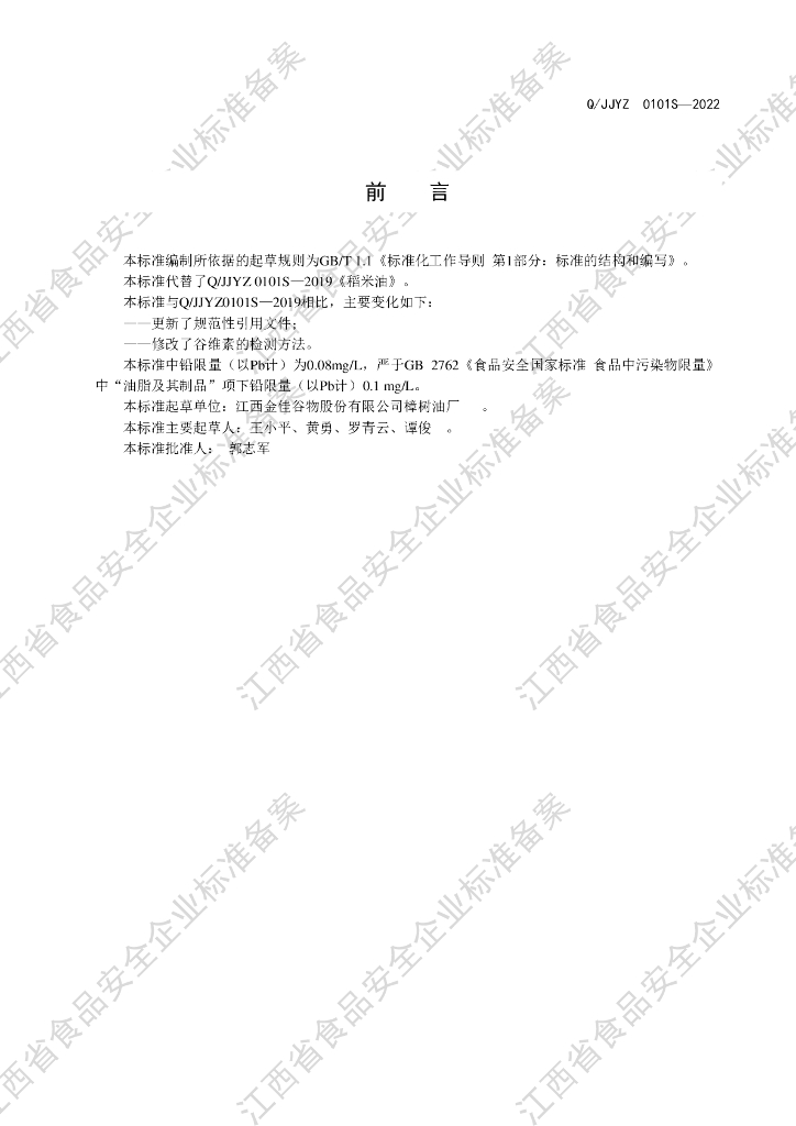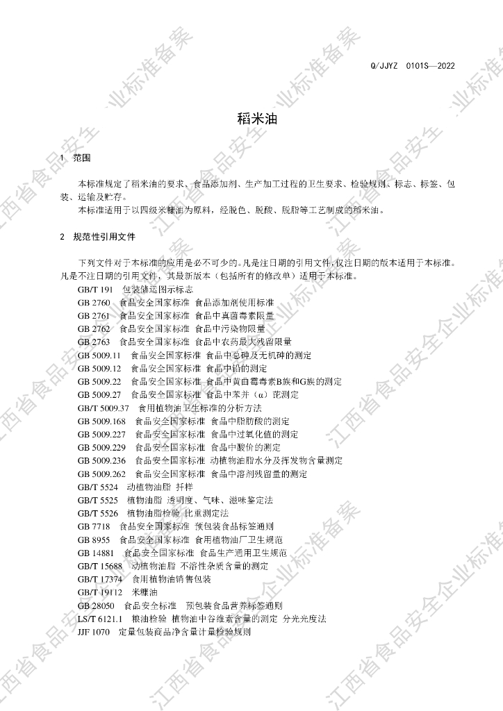 Q/JJYZ 0101S-2022 稻米油