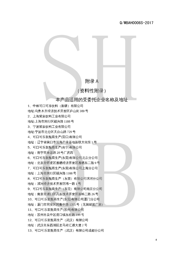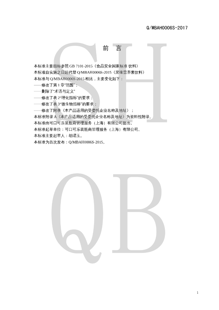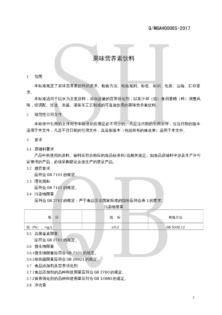 Q/MBAH 0006S-2017 果味营养素饮料
