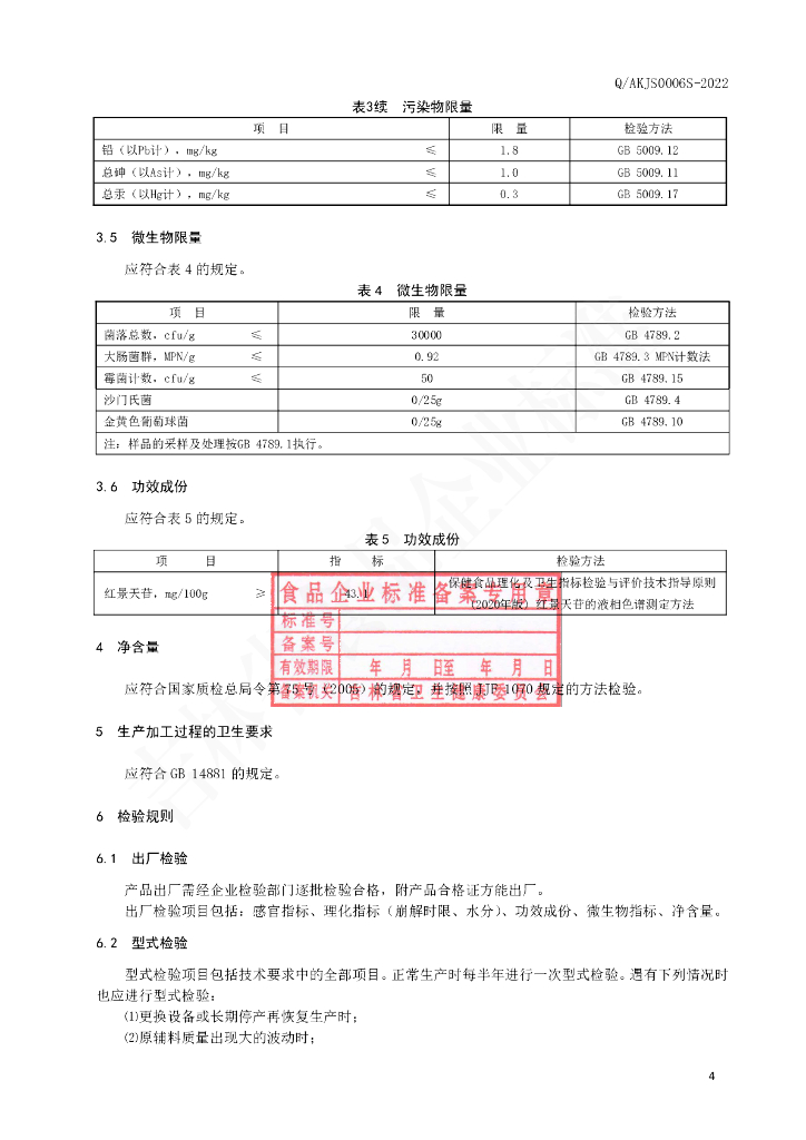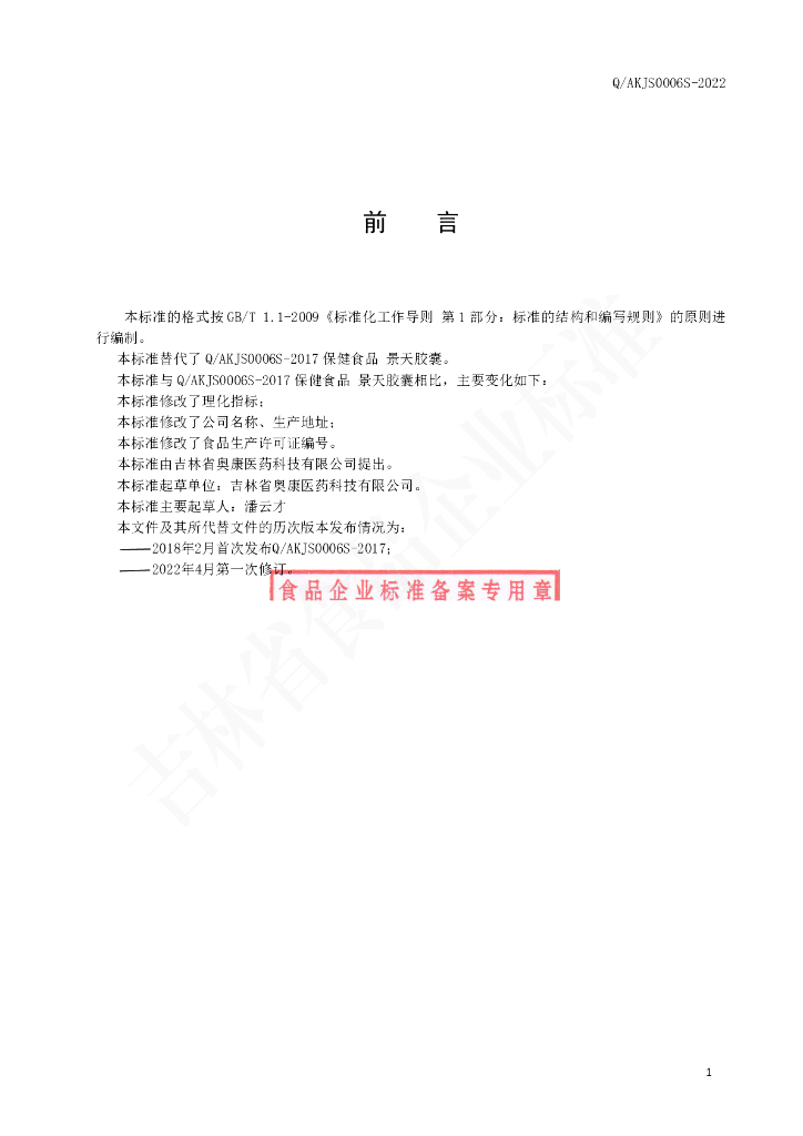 Q/AKJS 0006S-2022 保健食品 健今牌景天胶囊