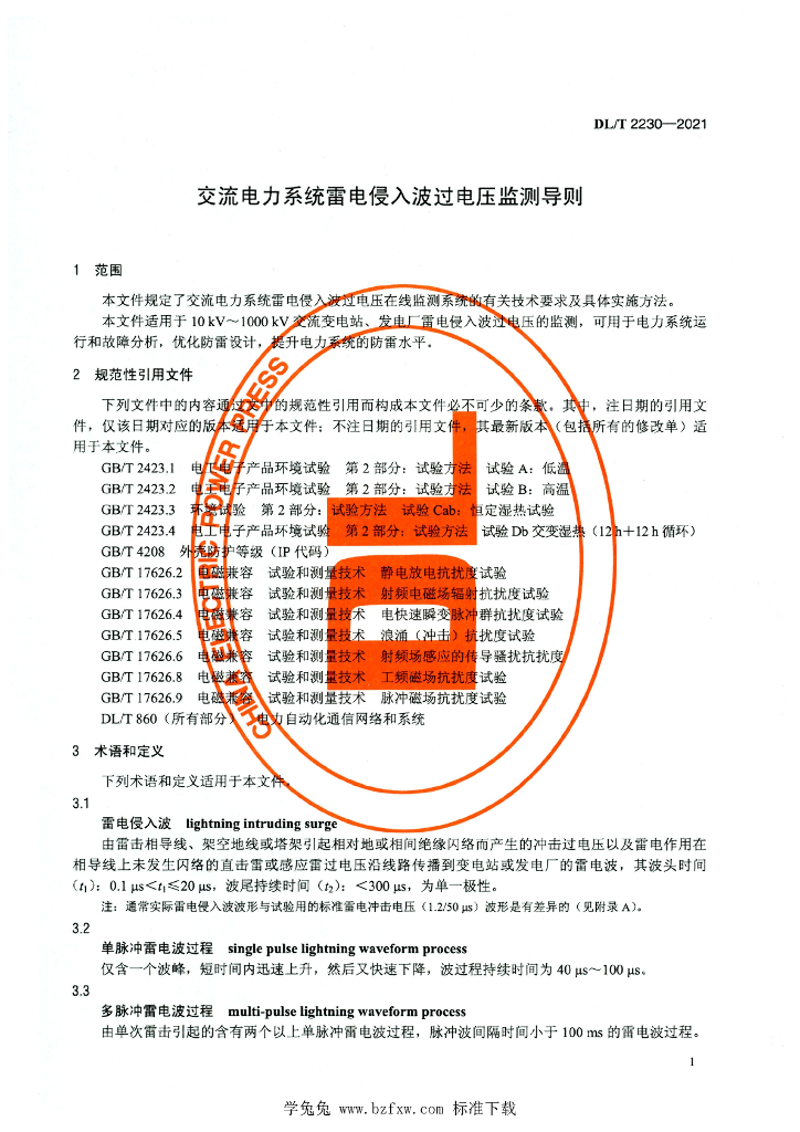 DL/T 2230-2021 交流电力系统雷电侵入波过电压监测导则