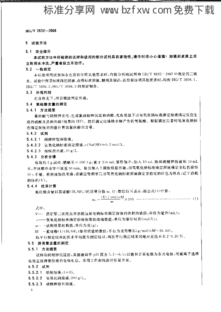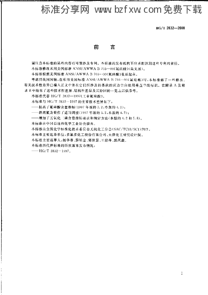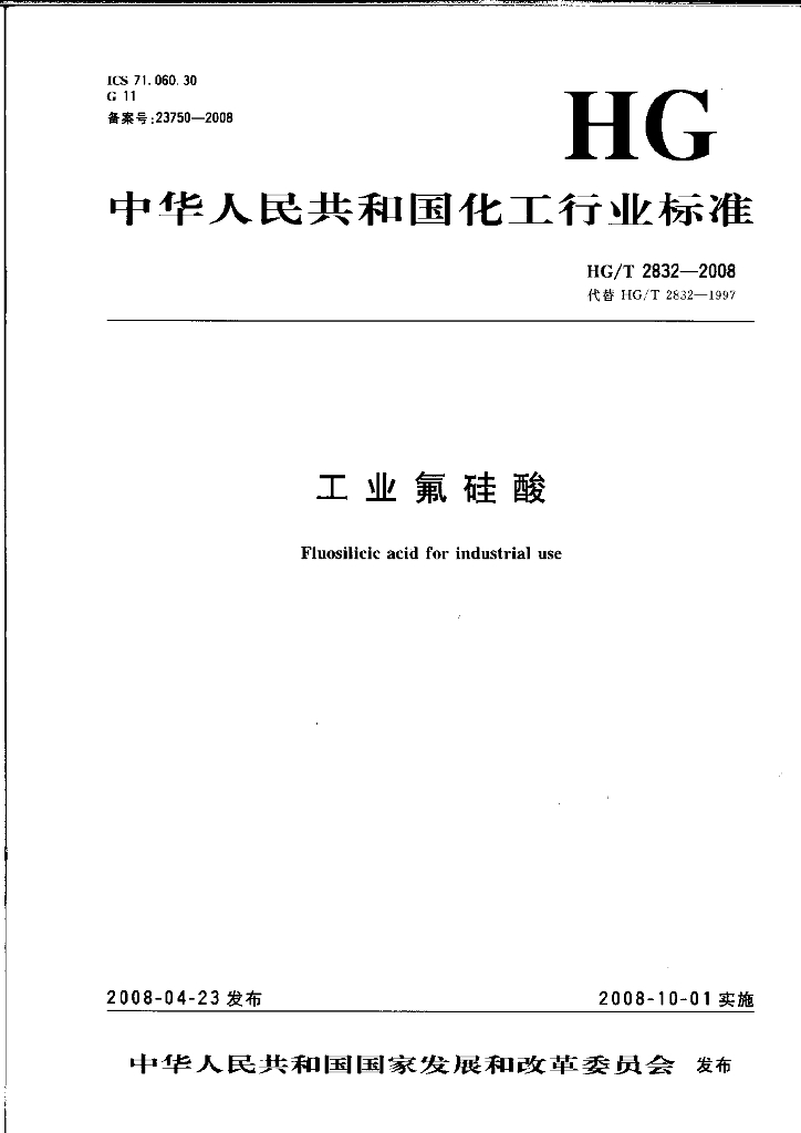 HG/T 2832-2008 工业氟硅酸
