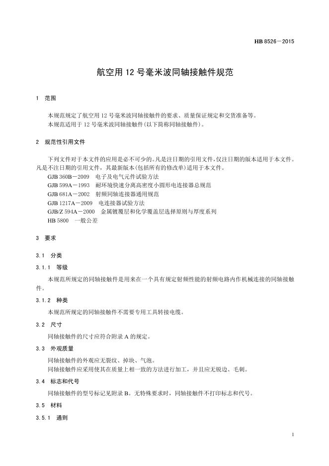 HB 8526-2015 航空用12号毫米波同轴接触件规范(2017)