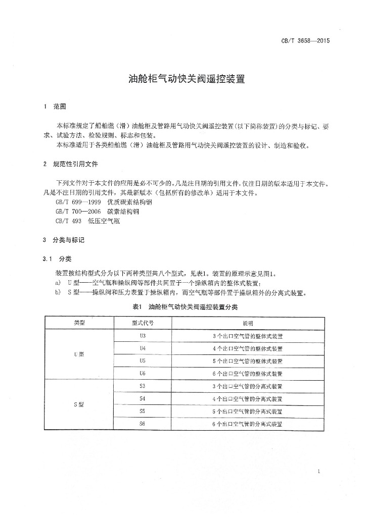 CB/T 3658-2015 油舱柜气动快关阀遥控装置