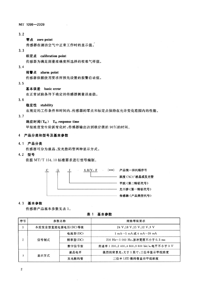 MT 1098-2009 煤矿用光干涉式甲烷气体传感器